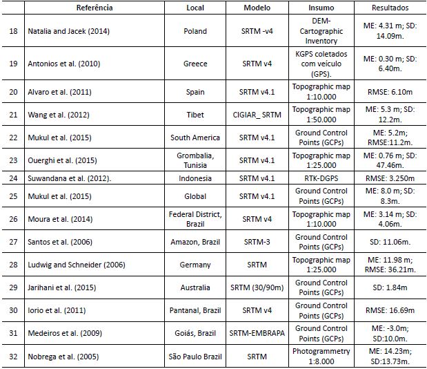 Bias, S. E., Ribeiro, C. J. R., Baptista, M. M. G., Bernardi, E. V. J. 2010. Avaliação da exatidão do MDE obtido por meio do SRTM e pela carta do IBGE na escala 1:100.000. Revista Brasileira de Cartografia, 63(01), p.149-155.