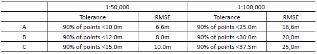 The RMSEs of the SRTM models are compared with the tabulated values of the PEC to establish the accuracy class. The PEC (Decree nº 89.817/1984; Brazil 1984) establishes three accuracy classes according to the scale of the map: “A”, “B”, and “C”; where “A” is the most accurate product. Table 2 lists the PEC classification for the 1: 50,000 and 1: 100,000 scales. This approach enables a comparison with other studies (Santos et al. 2006; Miceli et al. 2011).