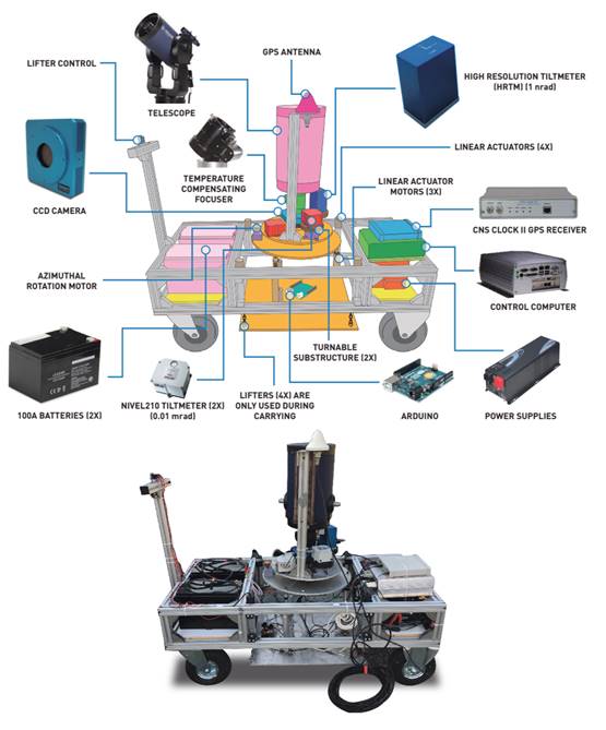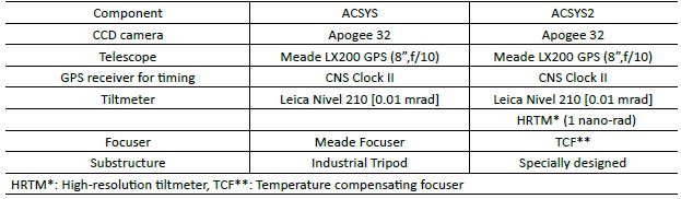 The first Turkish DZCS, the Astrogeodetic Camera System (ACSYS), was developed in Turkey in 2015 (Figure 3). The system components include a telescope, a CCD camera, two tiltmeters with the resolution of 0.01 milliradian [mrad], a focuser, a single frequency GPS receiver (the CNS Clock II), which is used for determining time, a GNSS receiver for highly accurate geodetic coordinates and a substructure (Halıcıoğlu et al. 2012).