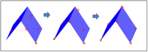 As the necessary number of points or triangles to describe the roof is a priori unknown, a large quantity of them is used for modeling, which may result in redundant triangles. For this reason, an algorithm to eliminate these unnecessary triangles was developed. The angle between adjacent triangles was analyzed, and small vertices (< 45o) and their composing edges were removed from the structure, resulting in a simplified model.
