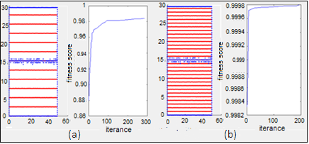In the second stage (using the best solution found in the previous step and the medium-density cloud), the fitness score was maximized, but not as much as in the previous stage (from approximately 0.9836 to 0.9852 and 0.9835 to 0.985), as shown in Figure 12.