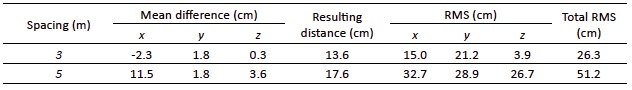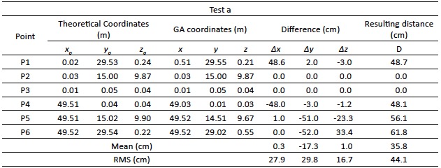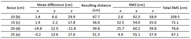 As it can be seen in Table 2, however, this difference is not that large. Generally, a RMS of less than 1 m was obtained, except for Test b (maximum 10 cm noise).