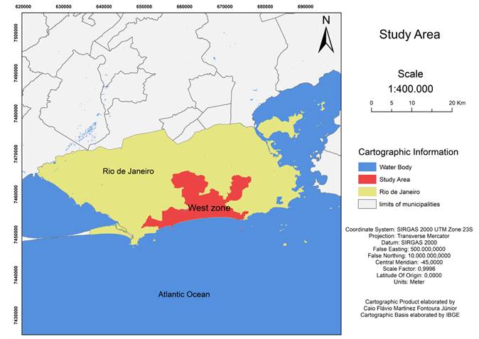 For the realization of the values plan for a given municipality, the first step is the choice of the area in which the study will be carried out. The locality of interest chosen was the region of Barra da Tijuca, Camorim, Jacarepaguá and Recreio dos Bandeirantes, part of the West Zone of the City of Rio de Janeiro, located between 650000 meters / 690000 meters south latitude and 7450000 meters / 7470000 meters west longitude, as it represents the area of interest on the location map in Figure 1.
