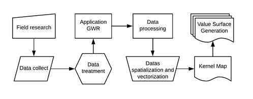 In this context, a Plan of Generic Values was developed for the urban area of the quoted neighborhoods of the West Zone in Rio de Janeiro, based on data collection in the field, which used the cartographic base of IBGE (Brazilian Institute of Geography and Statistics) and the use of the Kernel estimator, to interpolate the estimated values of the Geographically Weighted Regression (GWR), to obtain the digital database of the real estate market in the study area.