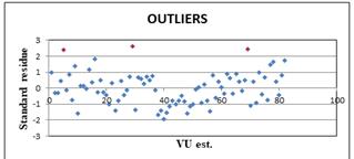 Through the sampling data, the presence of divergent elements was verified, where the suspicious data are evaluated as outliers when the points present standardized residues greater than two in the module.