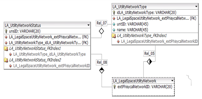 Utility networks are inserted into LADM through the LA_LegalSpaceUtilityNetwork class, which is associated with external classes for public service networks. This model gives an accurate idea of the relationship between the physical and legal representations of a real object. (DONER et al, 2011).