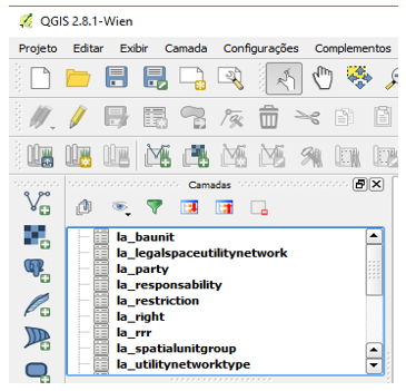 The visualization of the implemented classes is presented in figure 09, where they can be identified in the format of tables within QGIS 2.8.1 Wien.