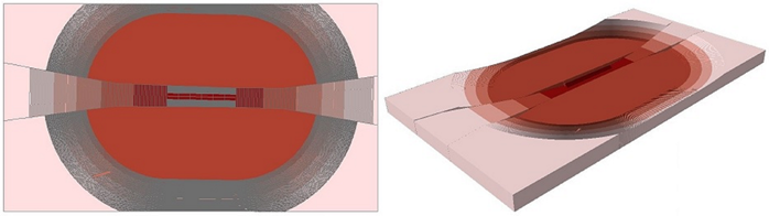 The 3D representation of PBZPA ramps and obstacle limitation surfaces was made by complementing the 2D representation of the PBZPA in shapefile format. The airport runway, approach surface ramps - second section, the approach/transition surface ramps - first section and the runway ramps were included manually. For the design of these ramps, the information contained in Ordinance No. 22/ICA were observed. The ramps consist of several polygons drawn side by side, and for each ramp we assigned their mean heights. Thereby, the 3D digital model of the PBZPA (Figure 3) was generated.