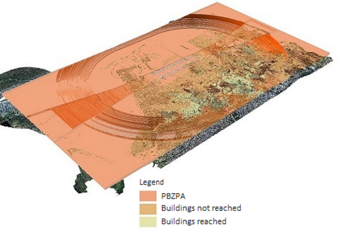 The spatial analyses were performed using the 3D models of the plots, buildings and PBZPA. To identify and quantify plots, buildings and critical areas, we compared plots heights and buildings heights with PBZPA limiting surfaces.