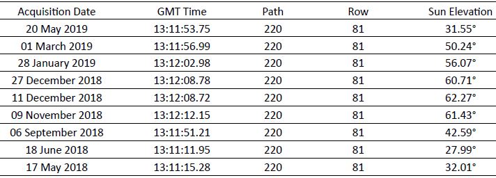The Landsat 8 OLI/TIRS products are a courtesy of the US Geological Survey Earth Resources Observation and Science Center. This study was financed in part by the “Coordenação de Aperfeiçoamento de Pessoal de Nível Superior” (CAPES), finance code 001, and the “Conselho Nacional de Desenvolvimento Científico e Tecnológico” (CNPq), Brazil.