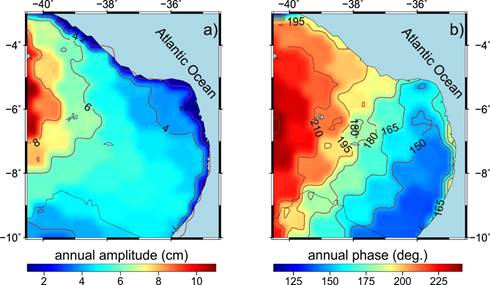 The GRACE Mascons time series (monthly and annual averages), from April 2002 to June 2017, are also used to extract the linear trend by the ordinary least squares (OLS) method (Gemael, 1994). Thus, it was possible to reach the objective (i) described in the introduction.