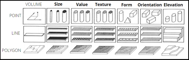 In the tactile cartography, the systematization of tactile graphic variables (Figure 1) proposed by Vasconcellos (1993) stands out. It was designed from the adaptation of visual graphic variables created by Jacques Bertin in 1977. Since then, the color has remained an exception among the variables for being considered restricted to people who are able to see.