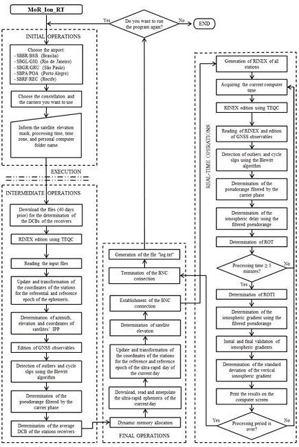 MoR_Ion_RT is software developed for real time ionospheric threat assessment for GBAS in Brazil (Pereira 2018). It is divided into four types of operations: initial, intermediate, final and in real time (Figure 3). It should be noted that the software was developed in C language and for the Windows operating system.