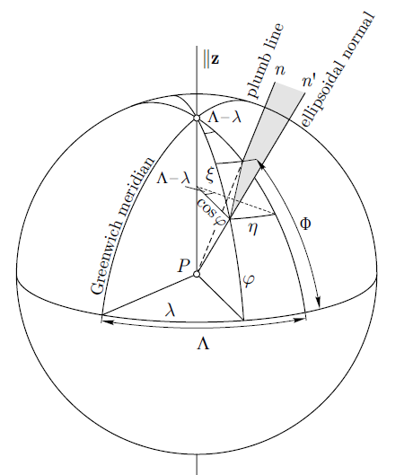 Where ε is the deflection of the vertical component in a given azimuth, Az. Featherstone and Rüeger (2000) assert: