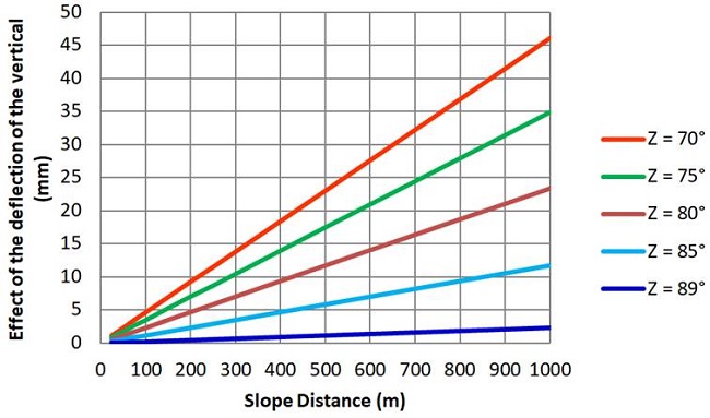 Therefore, since the reduction of distances and angles due to the deflection of the vertical is usually neglected by commercial softwares and internal software of total stations, it is recommended to estimate its components in the mathematical model, for example, by the least squares method. Furthermore, in order to minimize the influence of the deflection of the vertical on the horizontal geodetic positioning with total station, it is suggested new approaches for establishment of geodetic markers, avoiding the measurement of long distances and/or with zenith angles away from 90°.