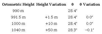 In order to analyze whether this effect is significant for this case study, height variations were simulated from a reference point, in the region with the greatest θ and which presents strong gradients in the GGM (Figure 5). It can be observed in Table 1 that in a height difference of 50 m, the θ varied slightly more than 0.1”. In practice, the height of the instrument will be close to 1.5 m, which produces changes only in the milliarcsecond, showing that this effect is negligible for the purposes considered here. It is important to highlight that the geopotential model EGM2008 does not use a digital terrain model with high spatial resolution, so the values can be slightly higher and lower, but this does not compromise the conclusion of the research because we seek to analyze only the order of magnitude for the Brazilian territory.