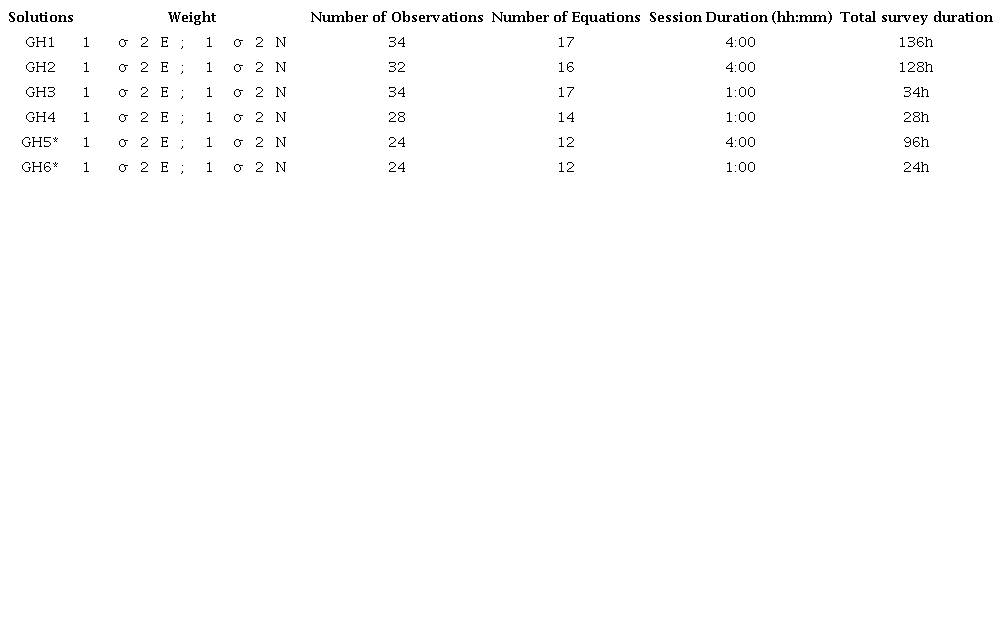 As expected, the adjustments that used observations with sets having session duration equal to 1 hour (GH3*, GH4* and GH6*), resulted in the worst precision.