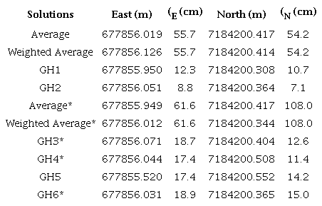 It is important to note that there was no consideration of the uncertainty associated with the position of the antenna. This uncertainty is at most 15.5 cm, which is superior to the accuracy value obtained by the GH2 solution.