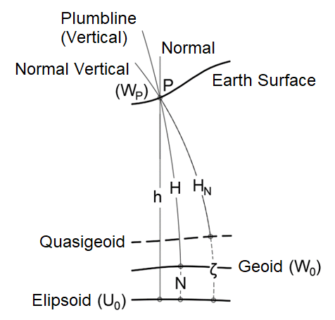 Drewes et al. (2002) showed that the height type, the reference surface, the realization and maintenance of the reference system are the main topics to define the vertical reference system, for SIRGAS, and recommended the introduction of two height types, geodetic or ellipsoidal (h) and normal (HN ). In this context, HN is defined considering the mean value of normal gravity () (Equation 3; Figure 1). According to Heiskanen and Moritz (1967), we have: