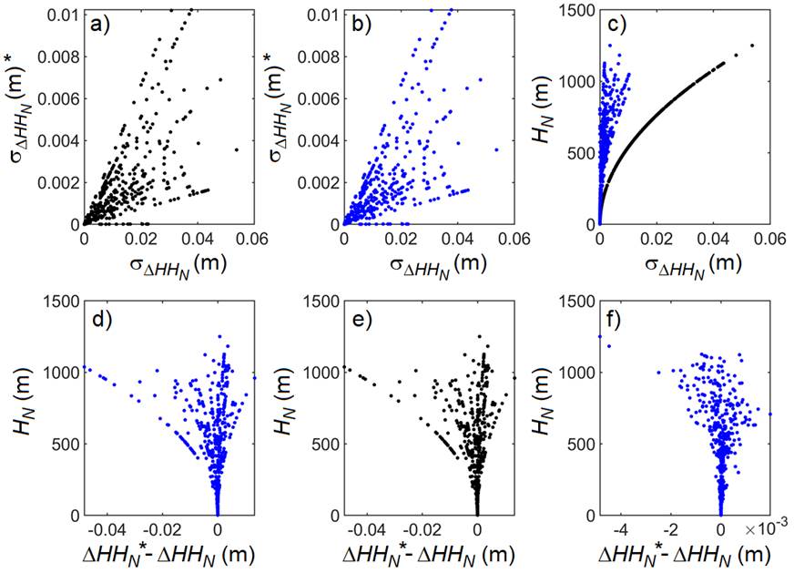 From the presented formulations, the data and its uncertainty, for the computation procedure, we can also estimate and analyze the uncertainties (σ), using the general law of variance propagation. Consequently, once the values and uncertainties of HN, g and ρ are known, and excluding other sources of uncertainties, we can evaluate their influence on the computation of H, N, and on the differences between H and HN, here called ∆HHN , as follows: