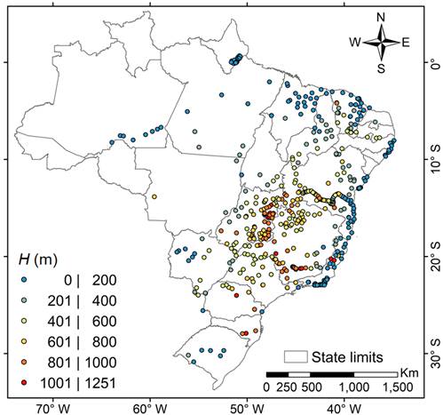 To corroborate our analyses from the results presented in Figure 4, Figure 5 shows the dispersion of (HHN versus HN , in which we observe that the largest discrepancy between the used methods occurs for greater heights.