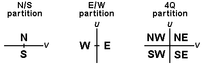 across the U-axis, creating an east/west (E/W) split;