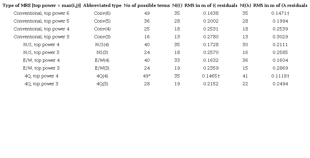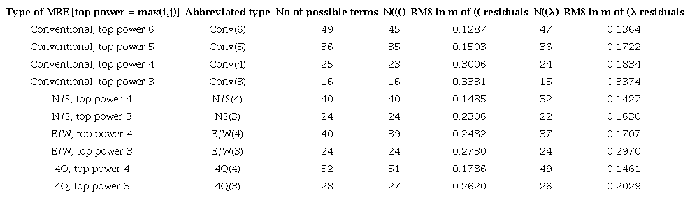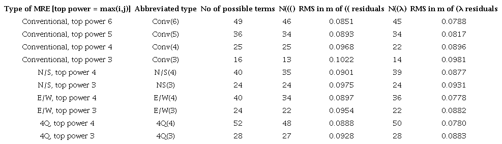 MREs of all 4 types were derived from the 82 control points. Statistical significance was determined by the ERLTO process. It can be seen from Table 4 that for each of the “Conv” MREs, the same number of terms were retained for (( and (λ; there is no particular reason for this, and the terms eliminated by ERLTO were not the same.
