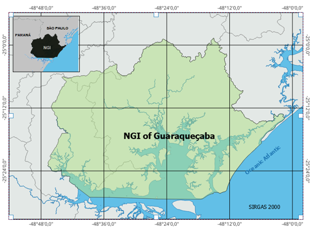 Among the specific objectives of this agreement is the construction of an environmental geographic database called BDG-AMB (acronym in Portuguese), intended to integrate the geospatial information of the NGI - ICMBio Antonina-Guaraqueçaba (Figure 1) and the subsidising of decision-making processes in the management of Federal Conservation Units.