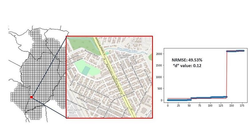 In addition to the regression graphs, it is possible to obtain the number of monthly inserts in this step. This procedure calculates the number of available features in a specific month subtracted from the monthly value that precedes it. This analysis showed the relationship between the number of features in the highest insertion month and the most recent date. Finally, the regressions were analyzed similar to the methodology presented by Grinberger et al. (2021) by calculating the Normalized Root Mean Squared Error (NRSME) of the median value of each cell’s features.