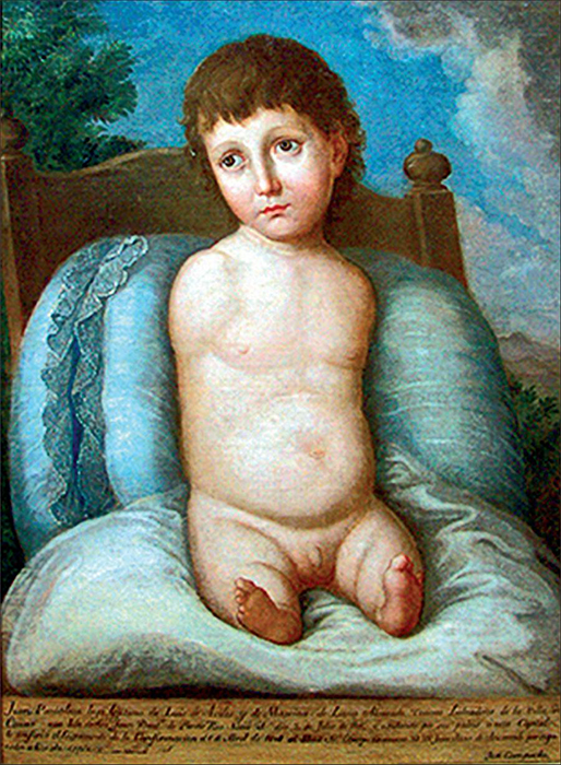 The existing scholarship focuses on the careful visual documentation of an identifiable clinical condition and on the supporting archival evidence of scientific interest, in keeping with current Enlightenment sensibilities. The boy’s melancholy expression, exceptionally expressive in comparison with Campeche’s other portraits, such as his 1797 depiction of the daughters of Governor Don Ramón de Castro, has also been the subject of recent comment.31