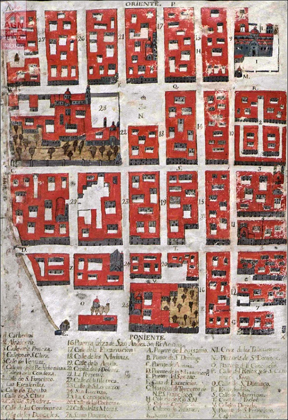 O Convento da Encarnação é um importante testemunho das primeiras fundações da Ordem Concepcionista no vicereino. Originalmente, construiu-se apenas um pequeno mosteiro naquela zona, ao final do século XVI, mas as redes tecidas por estas religiosas alcançaram a elite novo-hispana e conseguiram o apoio de personagens importantes para a cidade, a fim de patrocinar a construção do convento5. As cerimônias para a sua edificação tiveram lugar em 1639 e delas participou diretamente o vice-rei, marquês de Cadereyta, demonstrando uma estreita proximidade com as esferas de poder. Desde então, o convento assumiu-se como um elemento importante para a paisagem urbana e um dos símbolos de sua riqueza, que se media também pela quantidade e pela grandiosidade dos seus templos (Figuras 1 e 2)6.