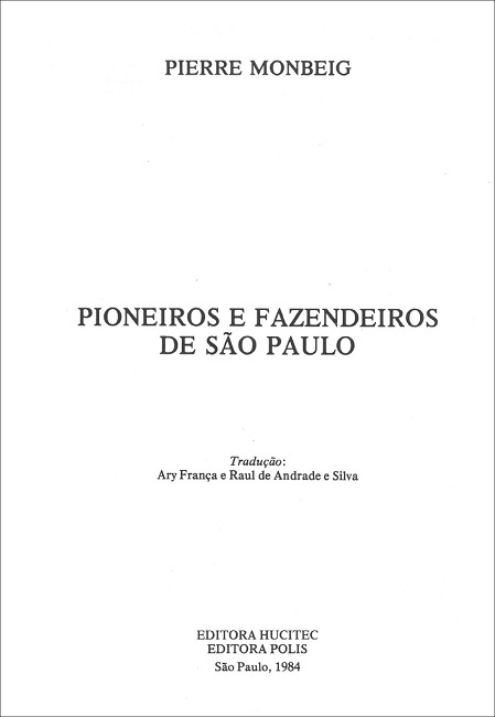 Entre as diversas possibilidades de leitura que “Pioneiros e fazendeiros de São Paulo” (1984b) oferece ao leitor contemporâneo, uma em especial interessa aos estudiosos da história ambiental, e está voltada para as reflexões sobre as interações entre o homem e o meio ambiente nesse momento de domínio dos sertões de São Paulo. Ao refletir sobre o universo pioneiro, Pierre Monbeig captou, como poucos, tanto os aspectos mais sutis quanto as grandes forças sinérgicas que agiam naquele momento, impulsionando práticas, condutas e ideias. Por fim, a obra oferece um vislumbre dos mecanismos econômicos, políticos, culturais e sociais, os quais contribuíram para a destruição ambiental que se seguiu ao avanço do homem sobre campos e florestas.