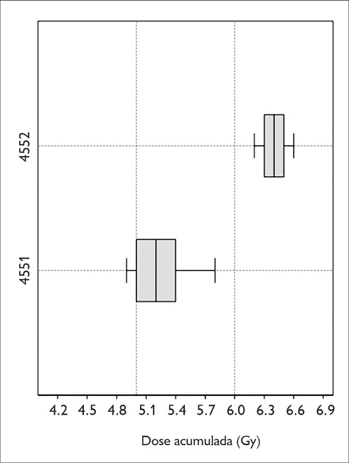 Conforme descrito por Vieira (2015), a análise da dispersão das doses acumuladas pode auxiliar na interpretação das idades, com a indicação de períodos de retrabalhamento dos sedimentos, seguido de ciclos de estabilização e de reativação. Conforme observado na Figura 5, a amostra mais superficial (4551) possui maior desvio-padrão quando comparada à amostra mais profunda (4552). Essa tendência remete a processos de retrabalhamento dos sedimentos superficiais provavelmente eólico, conforme apontado por Vieira (2015), no norte na ilha de São Francisco do Sul.
