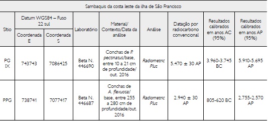As datações já realizadas antes deste projeto indicavam o início da ocupação dessa área por volta 4.000 anos AP. Porém, datações realizadas pelo projeto indicam que a ocupação pré-colonial no litoral leste da baía da Babitonga iniciou por volta de 6.000 AP, conforme é possível verificar no Apêndice.