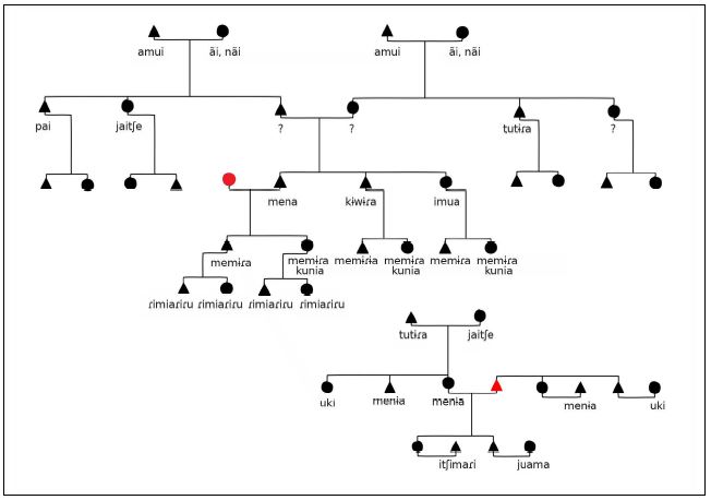 Moving on to terms in ego’s generation, we see that age grade-based sibling terms for male and female egos, a four-way distinction, were replaced by a single term, imua ‘same-sex sibling.’ This form is cognate to Tupinambá mũ, variously translated as relative, ally, friend, nation, and race ( Barbosa, 1951, p. 103). In the same domain, the term for a man’s sister was replaced due to the semantic shift of woman to sister. The only broader TG sibling term to survive as such is POK * kɨwɨɾa.