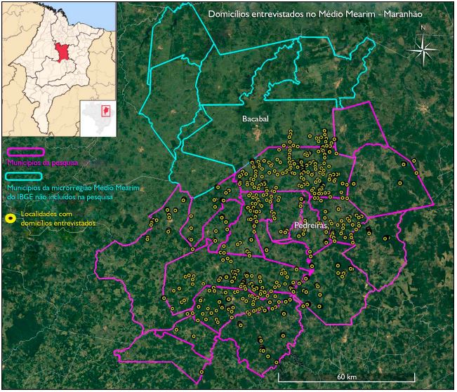 Uma vez definida a quantidade de questionários a serem aplicados em cada município, a identificação das localidades (povoados) nas quais seriam realizadas as visitas deu-se através de consulta junto a dirigentes dos sindicatos de trabalhadores rurais em cada município, assim como a diretores da Associação em Áreas de Assentamento no Maranhão (ASSEMA), organização não governamental com atuação regional. Considerando-se a busca por heterogeneidade e buscando-se, sempre que possível, limitar o número de domicílios de cada localidade a um máximo de dez, chegou-se a um total de 207 comunidades visitadas.