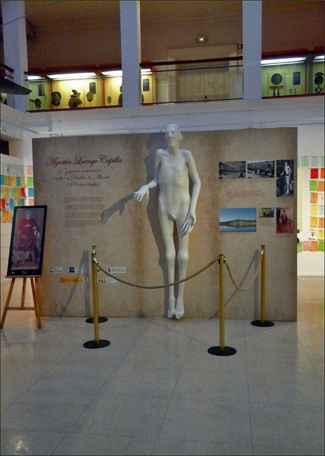 Tratava-se do anúncio público do museu que seria inaugurado em sua homenagem naquela cidade. Durante os meses que antecederam o projeto de confecção da nova imagem de Agustín, Puebla de Alcocer ganhou uma sala provisória para abrigar os registros de seu conterrâneo ilustre. Completados 140 anos de sua morte, o projeto museológico aproximava-se mais da perspectiva ‘educativa’ do museu moderno (Bennett, 2005) do que das feiras do século XIX. O que estava em questão, apesar do ícone que a estátua evidenciava, não era mais o corpo exótico de Agustín, mas sua fama como personagem de um importante museu de Madrid.