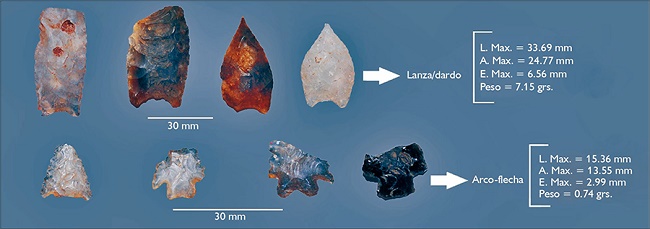 En el sitio no se registraron puntas asignables a armas de mano, tecnología con poca representación en sitios del Holoceno tardío (Banegas et al., 2014). La presencia y predominio de puntas de dardo y/o lanza en el registro arqueológico de LA-P3 sugiere que habría sido la más utilizada a pesar de no ser seguro en términos de eficiencia de caza (sensuRatto, 1994, 2003). Esta tecnología probablemente haya actuado en cacerías grupales por acecho o en desventaja por parte de las presas mediante el escondite de sus cazadores en parapetos o con camuflaje. Sin embargo, el registro sincrónico de puntas definidas de arco y flecha habría garantizado un mayor éxito y flexibilidad durante la cacería, debido a que dicho sistema es considerado seguro y que puede ser implementado tanto de modo solitario como grupal (Churchill, 1993; Ratto, 2003).