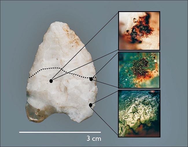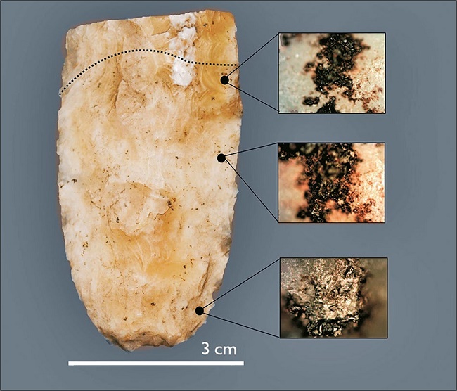 Por otro lado, se llevaron a cabo análisis de macro y microrrastros, para ampliar los conocimientos respecto a su posible uso y armado, mediante el registro de tipos de fracturas, puntos de impacto, estrías, características particulares del enmangue utilizado a partir del registro de sustancias adhesivas (i.e. mástic), su distribución en las piezas y micropulidos. Esto se realizó mediante un microscopio metalográfico Nikon Epiphot 200 (50x-500x) y una lupa binocular Nikon SMZ800 (10x-63x). El procesamiento y captura de imágenes fue efectuado mediante un sistema de video-microscopía Nikon Micrometrics 614.