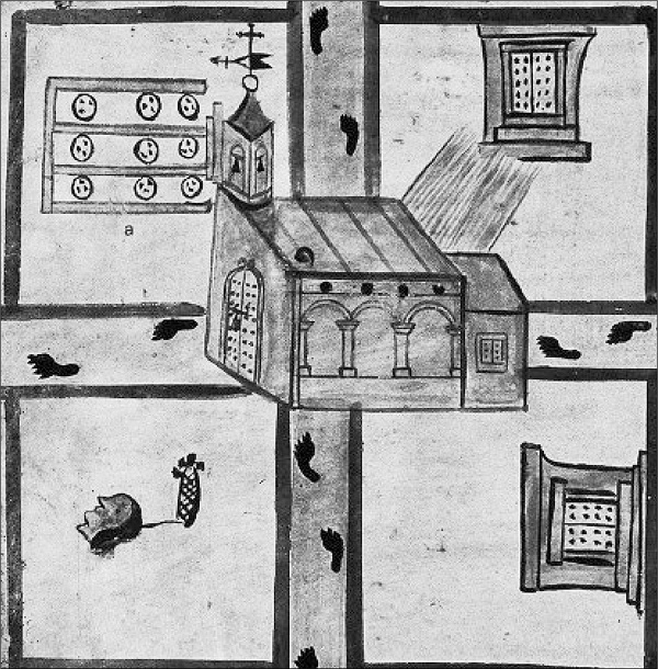 Otra posibilidad es que esas estacas se relacionaran con un primitivo templo construido en materiales perecederos mientras se construía la iglesia definitiva. En ese sentido cabe recordar que la iglesia jesuita de Tacuba, edificada en los años 70 del siglo XVI, tenía el techo de paja (Bueno Bravo, 2014)10. Por otra parte, Muriel (1978, p. 7) sugiere que la necesidad urgente de recibir a la primera comitiva de religiosos franciscanos en México llevó a que se hiciera, “con toda rapidez. . . . una sencilla construcción [de] nulo valor arquitectónico y de existencia tan efímera”, posiblemente edificada con materiales perecederos.