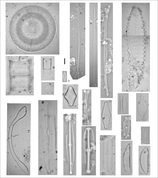 As diatomáceas possuem parede celular composta de sílica polimerizada (SiO2nH2O) e apresentam alta resistência física e química, resistindo inclusive a ambientes sedimentares (Battarbee, 1986; Julius & Theriot, 2010), sendo excelentes indicadoras para estudos arqueológicos e paleoambientais.