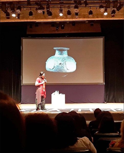 Mais recentemente, estes objetos têm também surgido em discursos de resistência, como testemunhos de um longo passado indígena, seja por representantes dos próprios povos indígenas, seja através de discursos que os apoiam e querem descontruir o discurso colonialista. Um exemplo foi a performance da artista e ativista Daiara Tukano, em recente evento no MASP sobre artes ameríndias7, fazendo uso de imagens de peças arqueológicas amazônicas para evocar a ancestralidade dos saberes e conhecimentos indígenas (Figura 4).