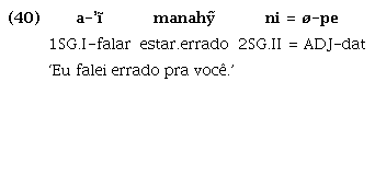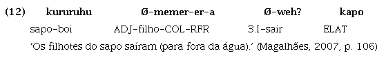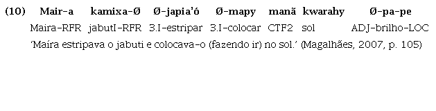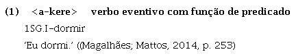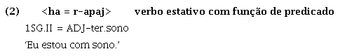 As línguas da família Tupí-Guaraní apresentam um fenômeno já amplamente difundido em diversos trabalhos desde Lemos Barbosa (1956) (sobre o Tupinambá), em que tanto verbos quanto nomes podem funcionar primariamente como predicado: “Nessas línguas, o uso do critério sintático, em que a função básica do nome é a de ser argumento e a do verbo é a de ser predicado, é insuficiente para tratá-los como duas classes lexicais distintas” (Rodrigues, 1996 apud Magalhães; Mattos, 2014, p. 252).