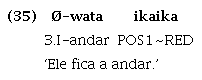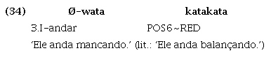 Como têm sua origem nos verbos, algumas dessas partículas compartilham com essa classe a propriedade de poder ser reduplicadas14 , como ilustrado em (34) e (35), a seguir: