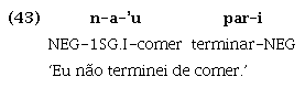 Acrescenta-se a essas características a de que a negação dessa sequência verbal, sendo uma negação descontínua, abarca ambos os verbos, conforme se pode observar nos exemplos (42) e (43):