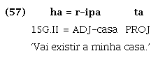 Diferentemente da tendência atestada pelo uso da partícula ika, a gramaticalização relativamente recente do verbo ‘querer/desejar’ em partícula de aspecto projetivo advém simultaneamente para verbos (56) e nomes (57) em posição predicativa, o que interpreto como um índice de manutenção da omnipredicatividade.