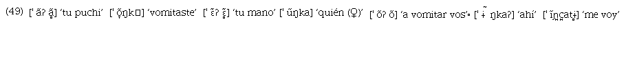 En ( 49) se ilustran algunos contrastes entre las propias vocales nasales.