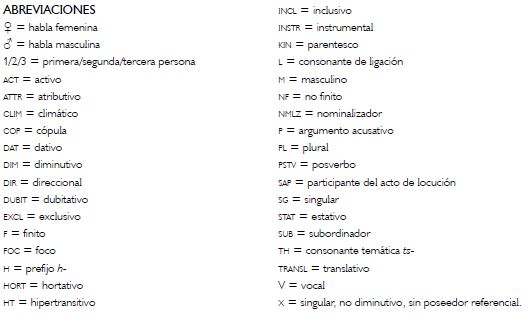 Por razones de espacio, no se han podido abordar temas como la estructura silábica, la fonética y la fonología del acento y los procesos morfofonológicos activos en el chiquitano migueleño (con la excepción de la palatalización). Estos temas se discuten parcialmente en un otro trabajo ( Nikulin, 2020b), basado en el mismo corpus.