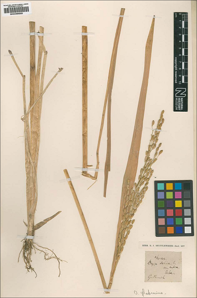 Enquanto isso, em 2011, um comprovativo botânico do arroz glaberrima foi localizado no Museu Britânico. Foi coletado em 1849 em Matanzas, Cuba ( Figura 3).