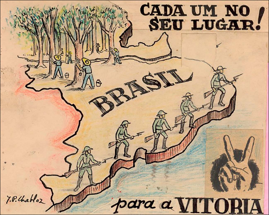 Wainer, S. (1943, setembro 9). Uma pausa na Batalha da Borracha. Diretrizes. Acervo Jean-Pierre Chabloz, Museu de Arte da Universidade Federal do Ceará, Fortaleza.